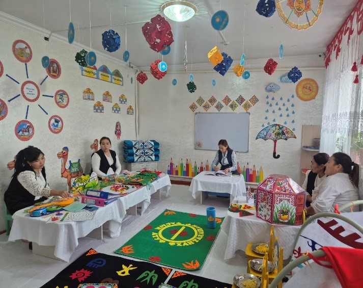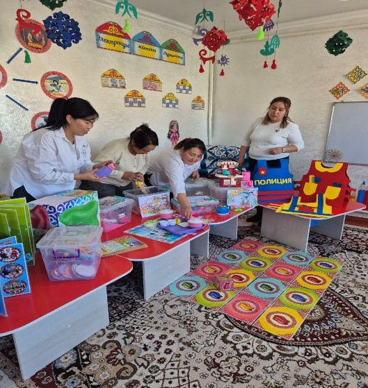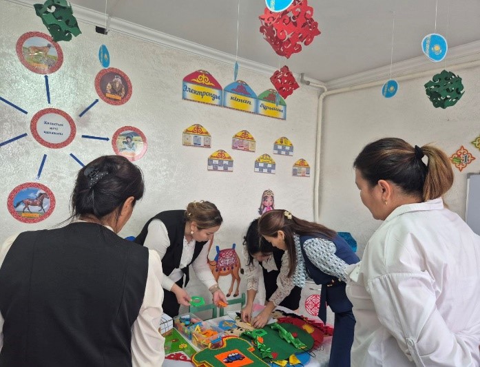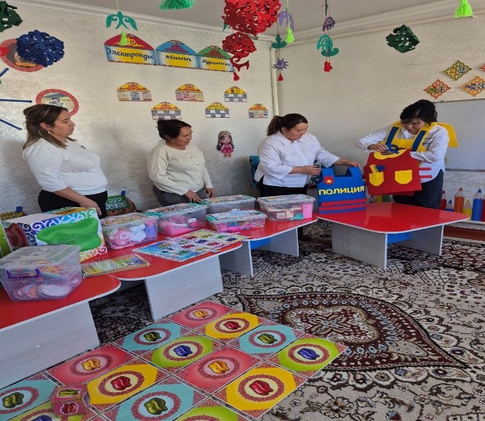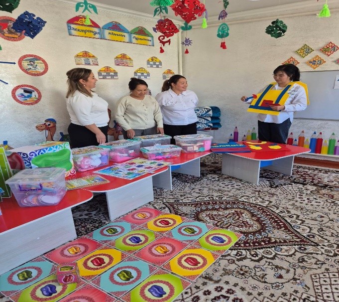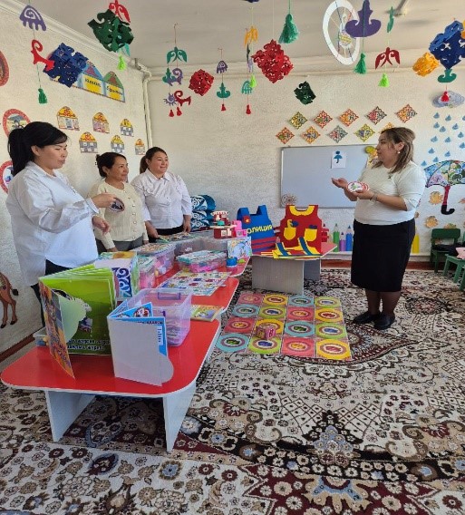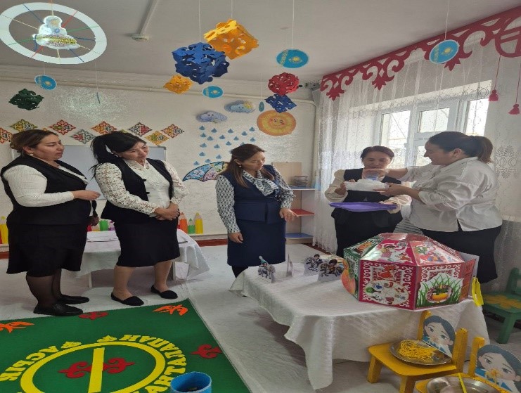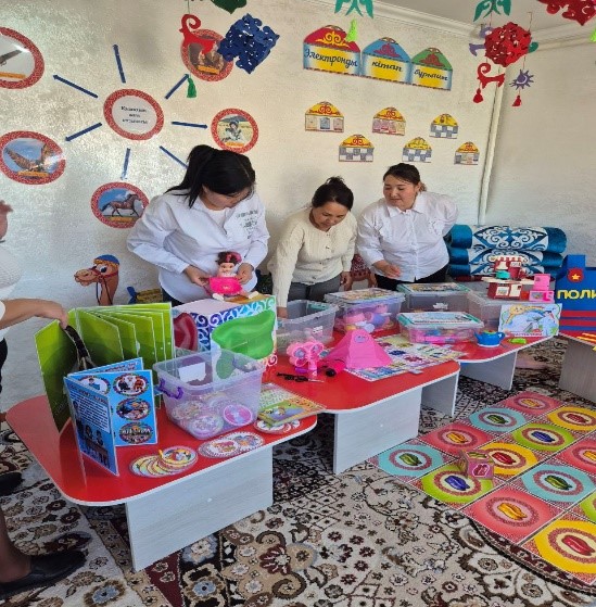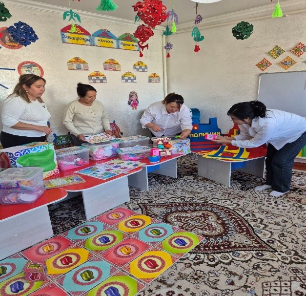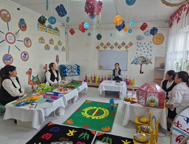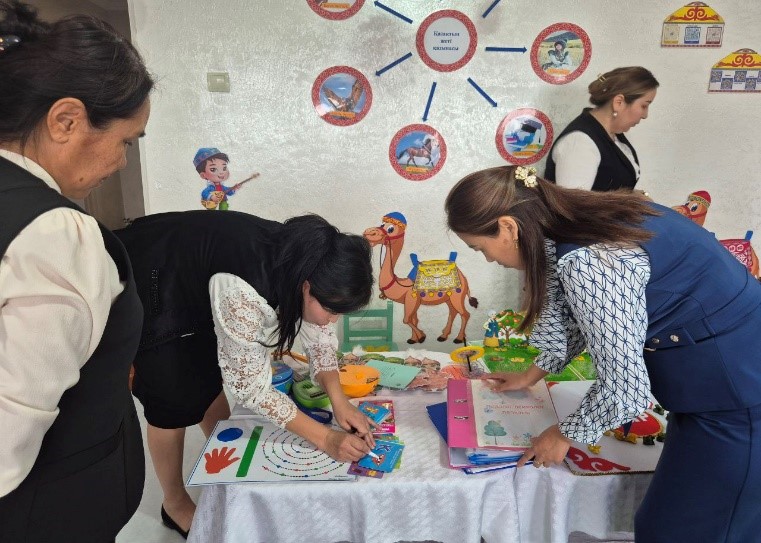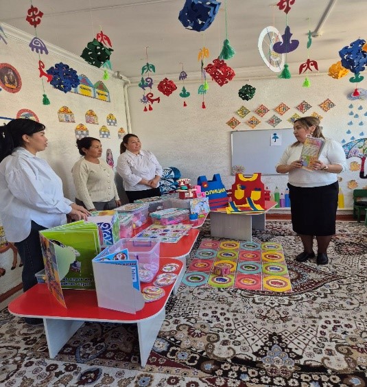 Міндеті: Көрнекі түрде дамытушы орталықтарды, заттық кеңістік орталықтарының материалдары мен жабдықтарын көрсету арқылы тәжірбие алмасу.